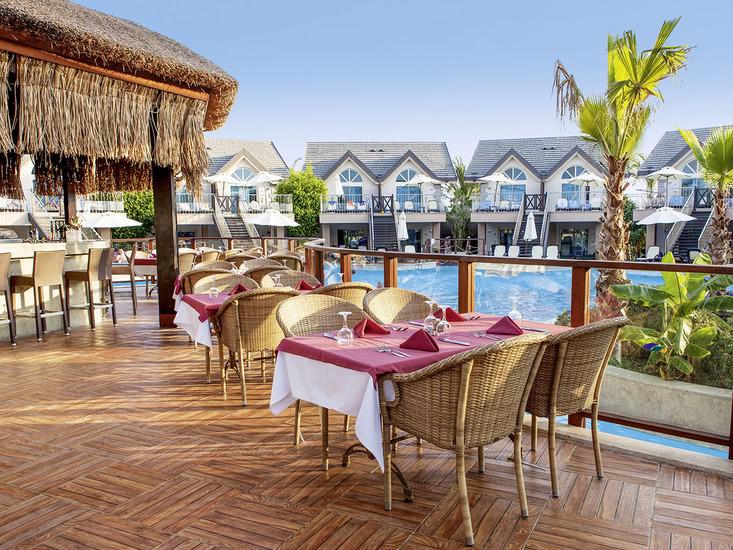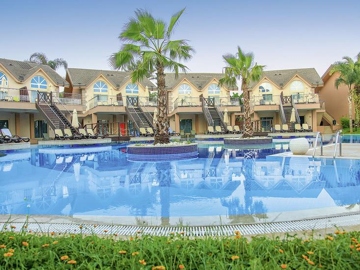 Het resort heeft meerdere zwembaden en een waterpark met glijbanen waar gasten van alle leeftijden kunnen genieten van de zon en waterpret. Er is ook een zonneterras waar gasten kunnen ontspannen en genieten van het uitzicht op de omgeving.