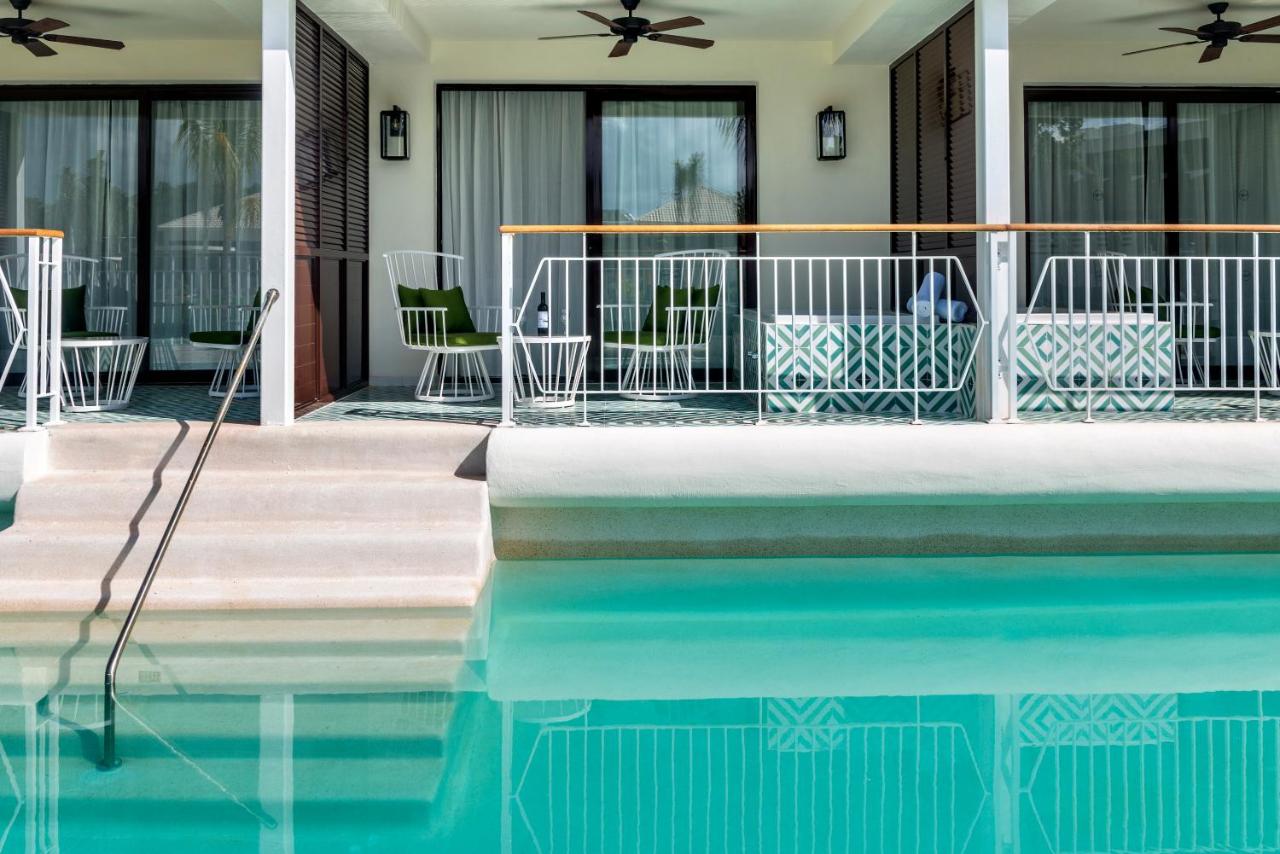 Elke swim-up kamer heeft een eigen terras en een prachtig uitzicht op de tuin en het zwembad. Gasten kunnen hier genieten van een heerlijke cocktail terwijl ze genieten van de zon en het water.