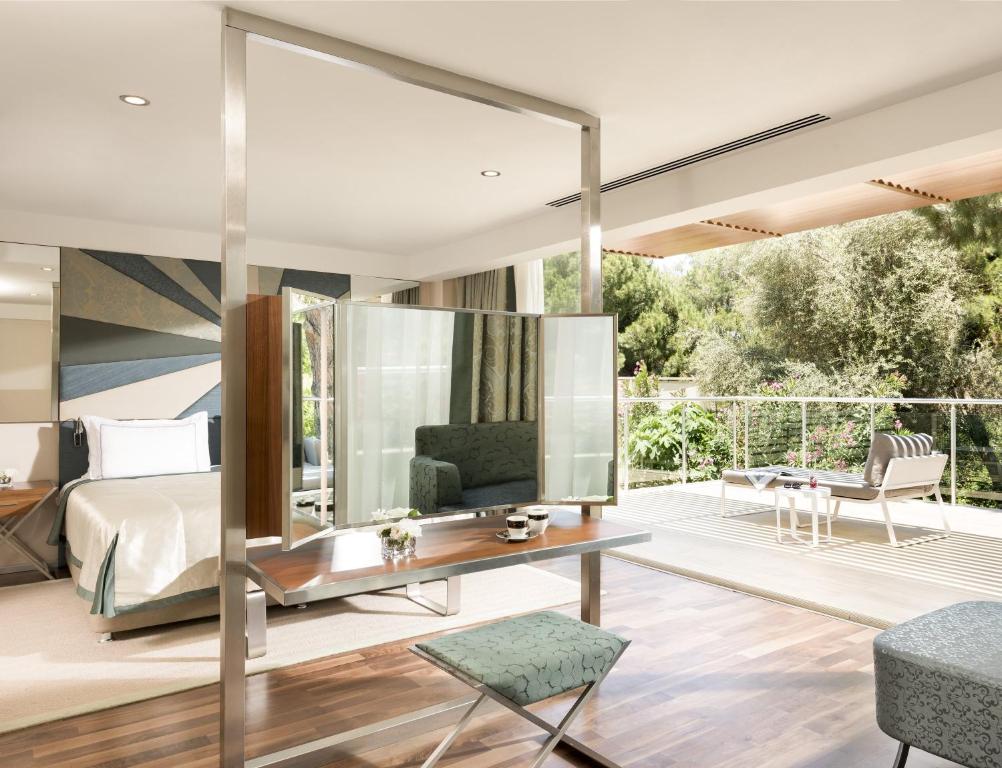 Het resort beschikt over verschillende soorten kamers, waarvan sommige een prachtig uitzicht op zee bieden. De standaard kamers zijn ruim en elegant ingericht, terwijl de familiekamers uitkijken op het zwembad. Ook kun je hier kiezen voor een swim-up kamer of een villa met privé zwembad. Het resort biedt verschillende voorzieningen, waaronder een adults only zwembad, een binnenzwembad, een zonneterras, een aquapark dat tijdens het hoogseizoen geopend is, een wellnesscentrum en sportfaciliteiten zoals tennis en boogschieten.